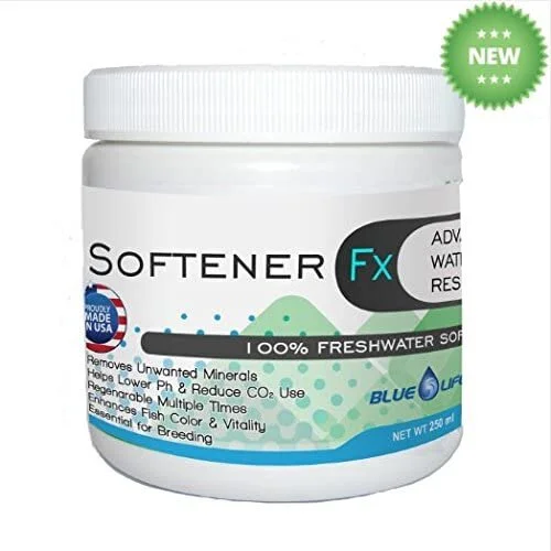 100% Freshwater Softening Resin Beneficial for Aquatic Plants Removes unwanted minerals Reduces C02 Use Helps lower Ph Promotes Fish Vitality Enhances Fish Colors Essential for Fish Breeding Regenerable for repeated use 6 times or more Blue FX Resins are advanced regenerable adsorption resins that comprise an entire new Eco-Friendly advancement in Aquarium Products. Blue Life USA’s regenerable, and Nitrate Fx, Phos Fx, and Organic Fx Resins compatible with both fresh and saltwater aquariums of all sizes with Softener Fx is the only Freshwater Only resin in the Blue Fx Resin Line. The easy to use media is the most cost effective approach to Aquarium filtration ever. All resins are regenerable multiple times, and the Regen Fx kit can regenerate up to 4 resin media bags at one time.