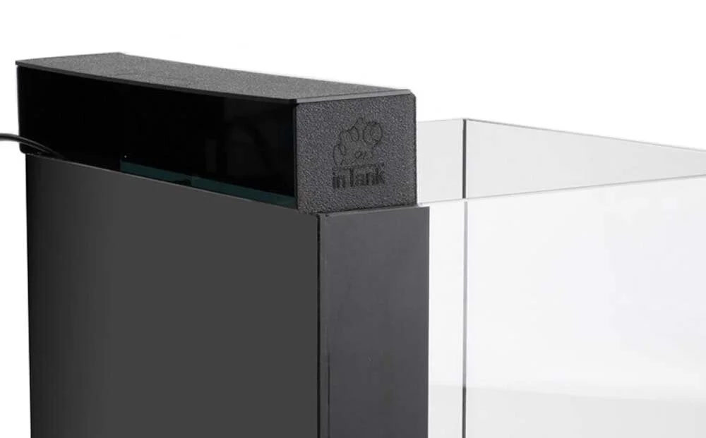 inTank aquarium-specific designed Filtration Covers hide unsightly equipment and cords around the rear filtration area. This cover is designed with notches to lock onto the false wall and rear glass. It features a knockout in the middle that can be removed without tools so that a lighting goose neck or mount can be installed to the rear of the aquarium.