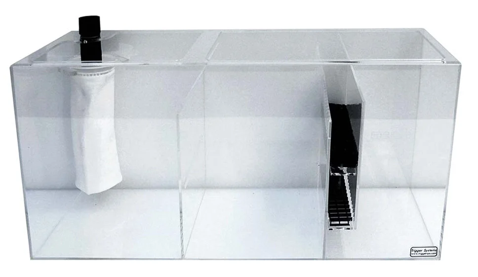 Trigger Systems specializes in aquarium sump manufacturing and are based here in the USA (Dallas, TX). All Trigger sumps come with a full top support brace which is made of a solid piece of material to prevent bowing over time from the humidity and water pressure. They also round the corners instead of squaring them which exponentially increases the strength of the corners.