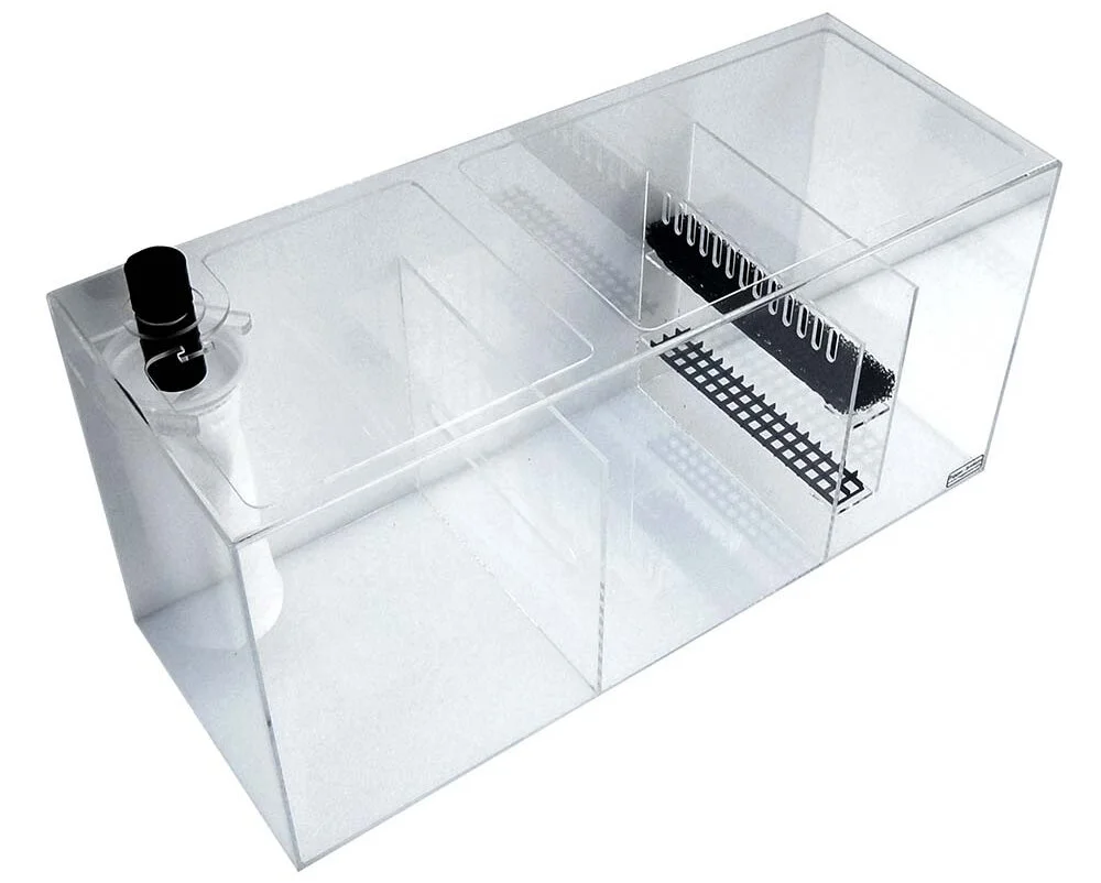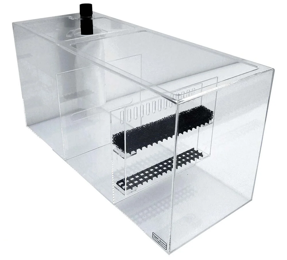 CRYSTAL SUMP models come with dual platforms in the space before the return section. The top platform comes with a foam block filter and the bottom one is open to use for several different filtration methods (bag of carbon, bio balls, rubble rock, etc.). This feature is on the SUMP models only.