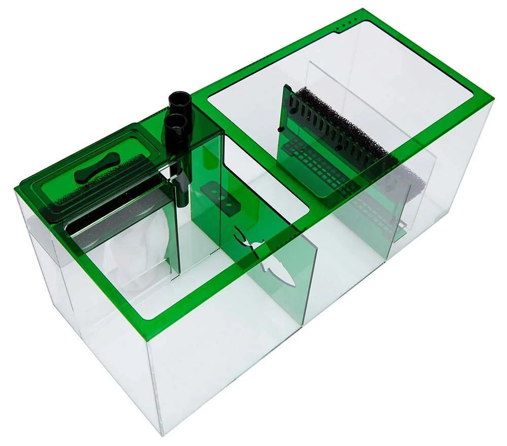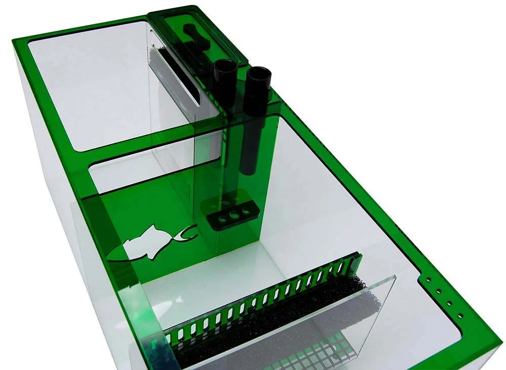 Water level in the sump is adjustable from 7” to 9.5” to accommodate for the water height requirements for different protein skimmers.