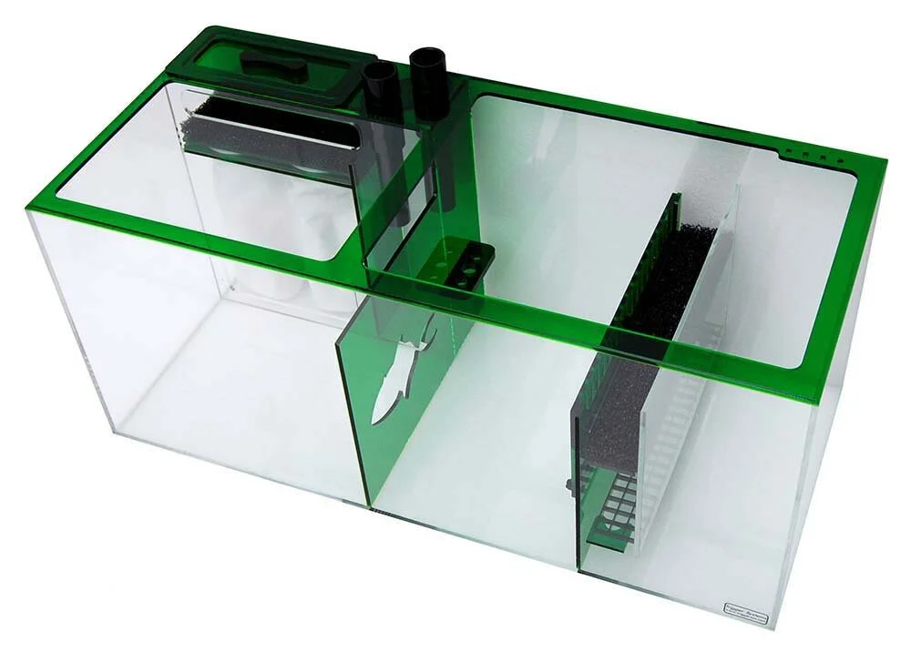 Trigger Systems specializes in aquarium sump manufacturing and are based here in the USA (Dallas, TX). All Trigger sumps come with a full top support brace which is made of a solid piece of material to prevent bowing over time from the humidity and water pressure. They also round the corners instead of squaring them which exponentially increases the strength of the corners.