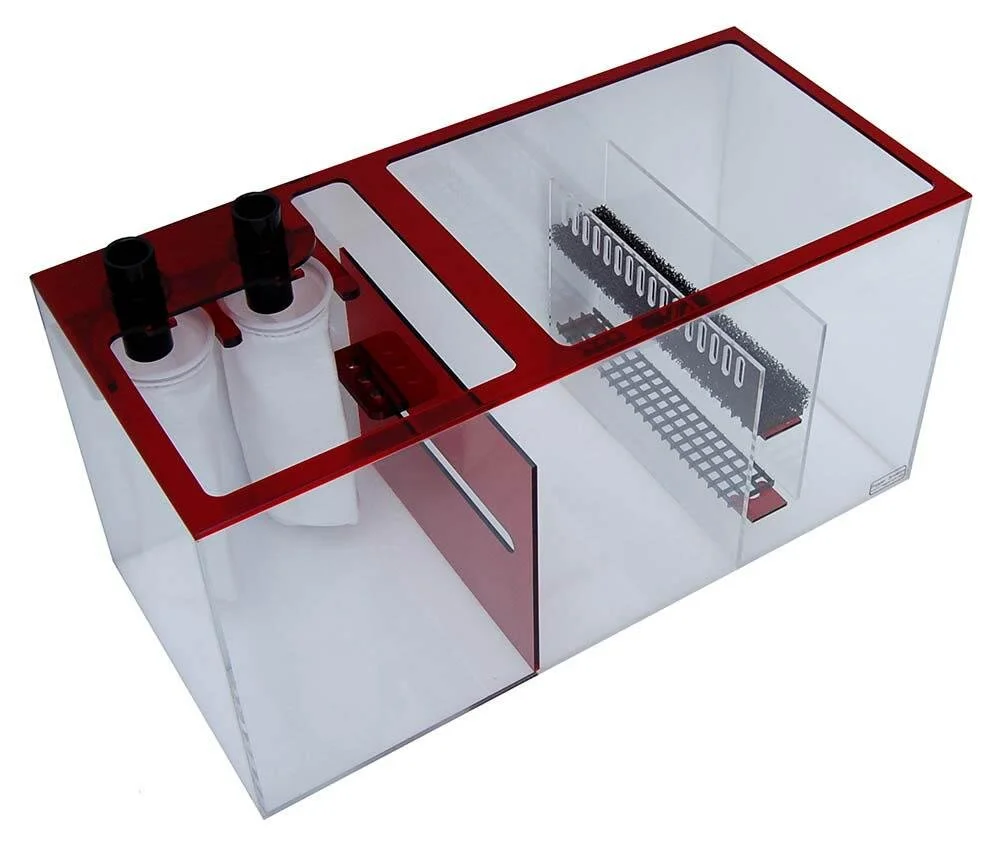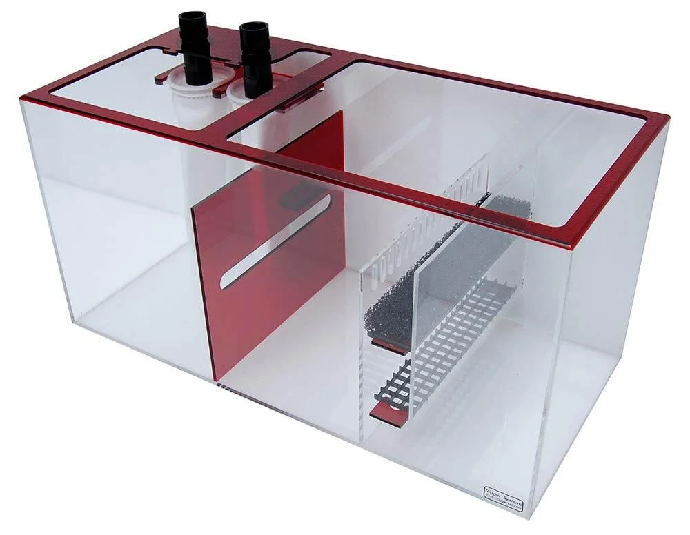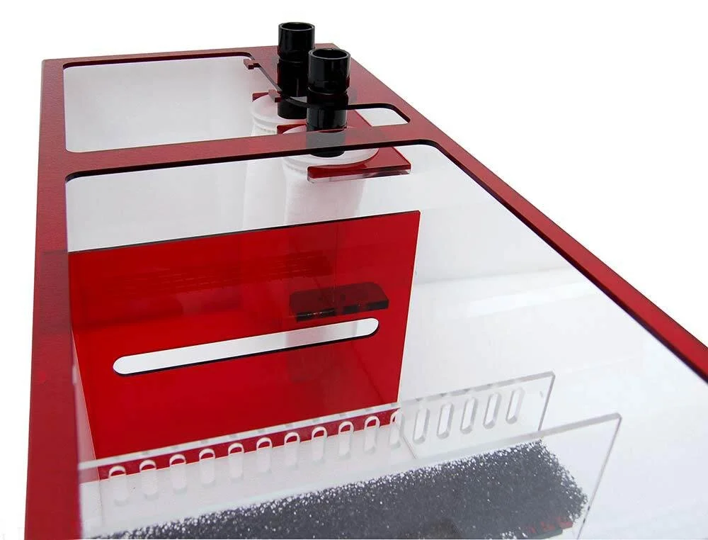 RUBY SUMP models come with dual platforms in the space before the return section. The top platform comes with a foam block filter and the bottom one is open to use for several different filtration methods (bag of carbon, bio balls, rubble rock, etc.). This feature is on the SUMP model only.